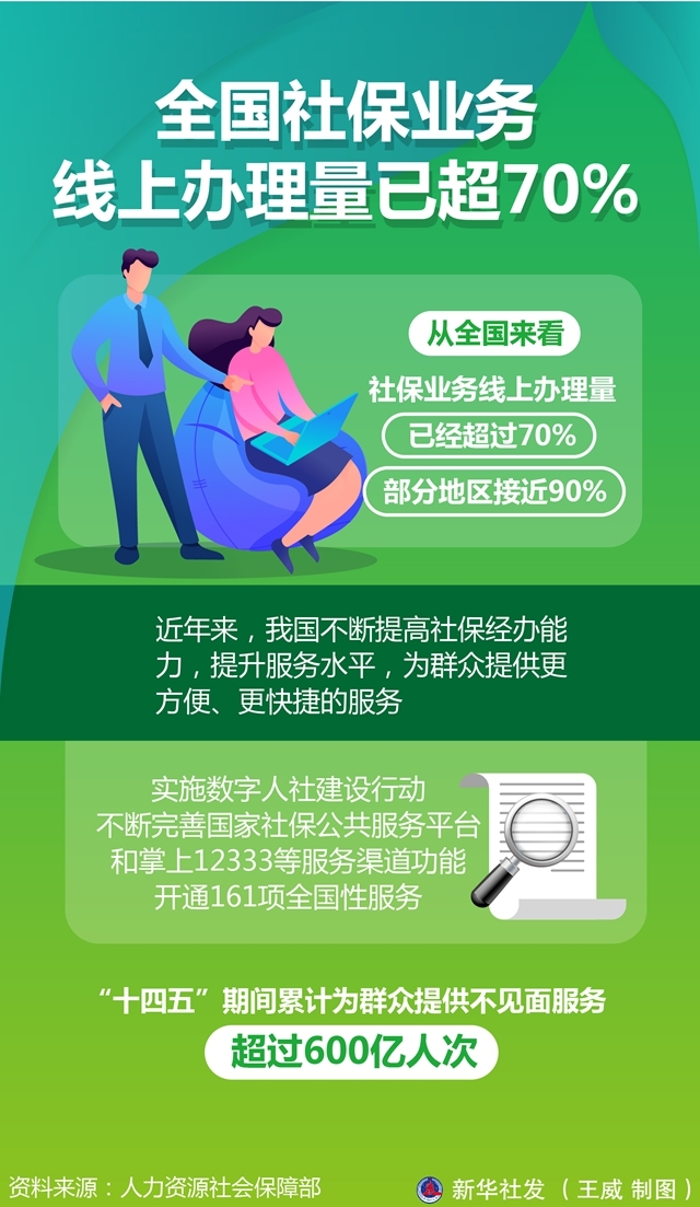记者近日从人力资源社会保障部获悉,从全国来看,社保业务线上办理量已经超过70%,部分地区接近90%。